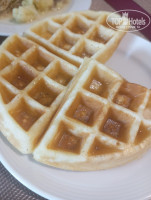 Яйца в любом виде, сосиски, ветчина, хлеб, вафли, джемы, овощи, салат, арбуз, ананас, кофе, чай, молоко, масло, рис, суп, три вида горячего.