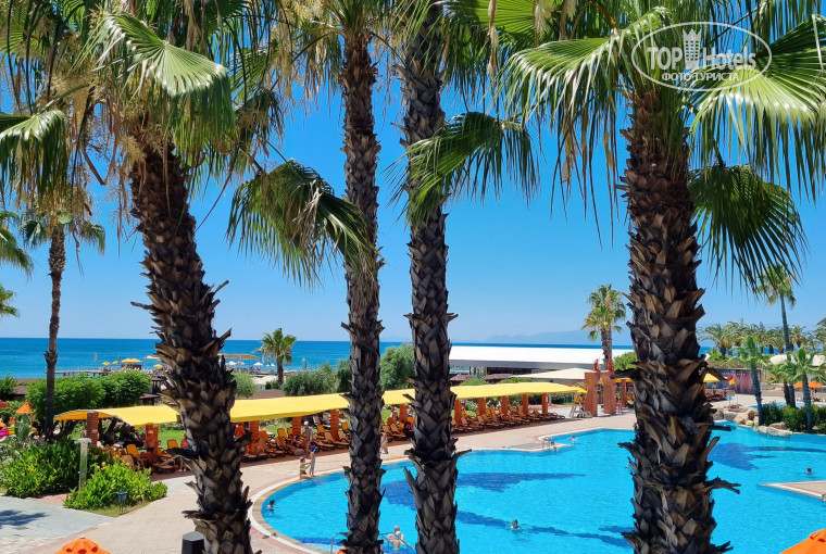 Я несколько раз была в соседнем Papillon и слышала много хорошего о Pine beach. И вот мы решили попробовать сменить локацию) Заселили нас на второй этаж бунгало. Номер хороший. Все необходимое есть + балкон. Рядом с нами оказался аквапарк, бассейн и бар. Аквапарк отличный. Для детей там рай. Катались бы от рассвета до заката. Прям в аквапарке есть кафе, где можно пообедать, чтоб не покидать веселую территорию и наесться вкусного мороженого (несколько видов на выбор). До ресторана и пляжа можно прогуляться пешком, а можно уехать на гольф-машинке, которые постоянно курсируют по территории. Что интересно, есть даже оборудованные остановки с лавочками для этого транспорта) ну а так, конечно, где махнул рукой - там и подобрали ) везут весело с музыкой. Ресторан, честно говоря, напоминает большую столовую, для 5* это минус, но если не придираться и не обращать на столы и посуду внимание, то окей. Еда вкусная, очень разноообразная. Если все описывать - символов не хватит. Персонал очень дружелюбный, улыбчивый, приветливый. Готовы помочь всегда и везде. Бассейны! Они прекрасны! Вообще территория отеля огромная! Очень зеленая, вся в цветах и пальмах. Много хвойных деревьев с поющими цикадами. Так вот, бассейны прекрасны! Лежаков хватает всем и на солнце и в теньке. В 10 утра приветственная песня включается по громкоговорителю и всех начинают весело собирать на аквазарядку. В течение дня тоже постоянные активности. В бассейне прикольно сделана «пещера», отличное решение. Сверху мостик для пешеходов, а снизу пещера для проплыва. Есть бассейн с морской водой. Рядом бар со всевозможными напитками и снек бар. Между бассейном и морем есть беседки под аренду. Там получаются замечательные фото. Пляж граничит с изъезженным нами Papillon, поэтому там нам все было ясно и понятно. Ходили нырять с пирса. На нем от отеля есть лежаки, зонтики. Были вечеринки на лужайке. Включается музыка, ресторан переезжает на газон и начинается веселье. Пенная вечеринка тоже была. Шоу программы вечером интересные ! Смотрели с удовольствием. Попали на выступление певицы Inna (хотела загрузить видео, но оно грузится без звука, поэтому только фото). Для детей постарше был в отеле тинейджерский клуб. Дочь пропадала там с утра до позднего вечера. Они играли в волейбол, настольные игры, квесты и просто болтали большими компаниями. Вожатые их развлекали как могли. Спасибо им огромное. Впечатления от отдыха остались самые хорошие. Уезжать совсем не хотелось. Советую отель к посещению с детьми.