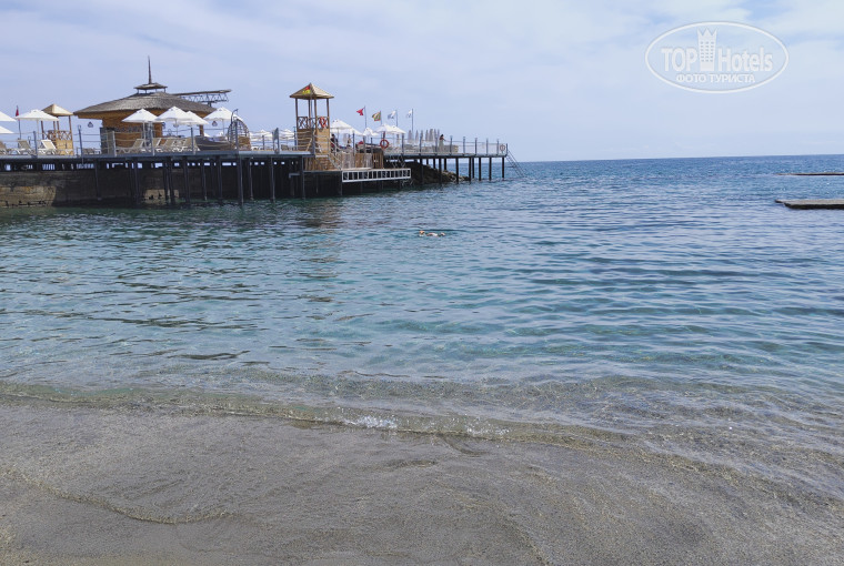 Пляж песчаный, комфортный с удобным заходом в море. Также можно отдохнуть и позагорать на пирсе, а также спуститься в море прямо с него. Особенно комфортно расположиться на мягких плетеных лежаках. Огромный плюс: бесплатный Wi-Fi на территории отеля( даже на пирсе у моря), что позволяет быть на связи с близкими.