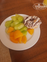 Из фруктов были бананы, яблоки, грейпфрут, апельсин, финики, дыня, арбуз, один раз была клубника.