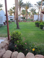 Про питание могу сказать, что чудес не ждали, и их не произошло). Довольно однообразное, но мясо всегда было в достаточном количестве - говядина, баранина, курица. Овощи всегда были, как сырые, так и приготовленные. С фруктами как-то грустно. Гриль они совсем не умеют делать - все жгут. Честно говоря, особенно вкусной еды не было, на мой взгляд. Но есть и плюс - в первый раз не привезла с отдыха ни одного лишнего кг). В принципе, я знала, куда ехала, поэтому разочарования не произошло). Один раз сходили в ля карт - по питанию там все то же самое, только в ограниченном количестве плюс пицца (типа маргариты, тоже не особо вкусная). Но нам понравилась сама атмосфера, там гитарист играл красивую музыку, ну и тихо-спокойно, без суеты. У основного ресторана есть один существенный минус - не всем хватало мест за столиками, люди стояли и ждали либо уходили. И еще общая проблема отеля - нехватка бокалов и стаканов, особенно стеклянных. Поэтому они с удовольствием наливают в вашу тару). Если на ужине допустим удалось отхватить стеклянный бокал, то так с ним и ходишь потом подливать - новых уже нет. Под конец правда они пополнили запасы - видели, как коробку распаковывают, стало чуть получше. Алкоголь крепкий египетский в пластике). Бренди кстати можно пить, довольно мягкий. Муж пробовал текилу, тоже сказал, что терпимо. Еще джин-тоник пробовали, тоник из жестяной банки. Голова утром не болела). Вино из пакетов, такое себе, но пить можно. Пиво разливное и в банках, которые при тебе открывают и наливают. В общем, тоже все ожидаемо. Кстати, обратили внимание, что сотрудники, включая барменов, очень доброжелательные. И в сравнении с Турцией показалось, что они как-то душевнее, без "двойного дна", особенно касаемо барменов - что в баре у бассейна, что у ресторана. Когда даешь чаевые - они искренне благодарят, а не как в Турции - нос воротят от пары долларов), не даешь - тоже никакого предвзятого к тебе отношения. А если вежливо поздороваться с ними или поговорить - то вообще лучший друг).