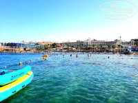 Пляж не большой, однако всем места хватает, несмотря на то что там находятся туристы 2х отелей. Вход в море пологий, песочек, но есть места с камнями можно поранится, у пирса плавают разнообразные рыбки. Гулять и купаться можно по всей набережной, лежаками соседних отелей пользоваться нельзя, охрана подходит, а так прогуляться классно.