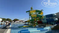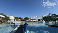 На территории одно основное большое здание, а также маленькие домики расположенные вдоль бассейнов, которые как река протекают по территории - очень интересное оформление. Также есть большой аквапарк, рядом с ним буфет.