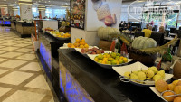 По еде: основной ресторан достаточно большой, но по утрам проблема с чаем и кофе - их реально не бывает и это надо бы починить администрации. Количество блюд не очень большое и разнообразное, но всегда было что вкусное поесть. Фруктов было много. Есть три а-ля карт ресторана. Были в итальянском и турецком. Итальянский не впечатлил, а турецкий был вкусный. Спасибо за помощь в данном вопросе guest relation (Nadya, если я правильно помню).