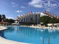 Вход в море пологий, и глубина нарастает постепенно. С погодой повезло – каждый день светило солнце, но в тени холодно. Вечерами без верхней одежды не выйти погулять. Жили в главном корпусе. Пополнение мини-бара (вода, минеральная вода и пепси) и мыльных принадлежностей (гель для душа, шампунь сомнительного качества, кондиционер для волос и крем для тела) – через день, а то и реже. Уборка тоже редко. Один раз сказала на ресепшн – что-то убрали, потом не стали заморачиваться, грязи не было, и ладно. Телевизор вообще не смотрели. Работают несколько русскоговорящих каналов. Кроме 7-этажного главного корпуса есть еще четыре 2-этажных бунгало и Zeus, 3-этажный. Территория отеля достаточно большая и красивая. Много зелени и чисто. Есть спортивные и детские площадки, столы для настольного тенниса. По контингенту – россияне, турки, европейцы. Все спокойно и дружелюбно. В отеле многие из персонала говорят по-русски. Проблем в общении нет.Wi-Fi отлично ловит на всей территории отеля.