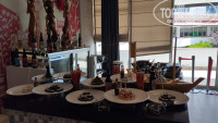 Отдыхали с мужем с 18 по 26 апреля 2025 года. Прилетели ранним рейсом одними из первых в день открытия отеля. Ехали из аэропорта в отель 40 минут, а обратно – 1 час 30 минут. Женщинам при заселении подарили розы. Отправили на завтрак и потом сразу заселили. Номер был с великолепным боковым видом на море. Когда покупали тур, сомневались, что в первые дни открытия отеля после зимнего периода все будет работать в полную силу. Но ошиблись. Все работало: снек-бар на пляже, все бары, суши-бар, кондитерская, мороженое. Делали гёзлеме, вафли. Питание хорошее. Всегда было достаточное разнообразие мясных блюд, рыбы, роллов. Много овощей, зелени. Из фруктов – яблоки, груши, бананы, грейпфруты, апельсины. Клубники не было, хотя в это время в Турции уже сезон. Много вкусных тортов и пирожных. Разнообразие выпечки, печенья, лукума. Аппараты с кофе. В барах делают турецкий кофе. Из соков натуральный только томатный из коробки, За деньги – свежевыжатый сок. Из спиртного – пили только шампанское. Анимация была с первого дня работы отеля. Каждый вечер – или живая музыка с певцами, или караоке, или дискотека. Все было на улице у бара, хотя вечером было достаточно прохладно. Днем – дартс, волейбол, танец живота и т. д. По периметру большого бассейна много лежаков с зонтиками. Мест всегда хватало. В первые дни вообще людей было мало, но постепенно отель почти заполнился. У моря тоже не было проблем с лежаками. Пляжная зона отеля широкая и длинная. Вода и в бассейне, и в море прохладная, но народ плавал. Есть еще небольшой бассейн у аквапарка с несколькими горками.