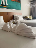 Трансферы до моря: Т.к. пляж напротив отеля временно перенесён, добираться приходится до выделенного пляжа слева, примерно километр. Чаще на трансферах добирались, ездят они достаточно часто, примерно каждые пол часа, но когда необходимо, замечали, что иногда подключают доп. автобусы, чтобы отдыхающие могли добраться. Пляж на данный момент выделен под 3 отеля, которые выше и писал, т.е. сеть wyndham. Наш отель находится рядом с Garden, с ними осуществляются совместные трансферы до пляжа. Места обычно хватает всем, как только заполняется полностью автобус, он сразу выезжает до пляжа, не дожидаясь времени, поэтому не стоит приходить за пару минут до заявленного времени отправки трансфера, потому что он скорее всего поедет раньше. Желательно выходить на трансфер за 10-15 минут до времени отправки указанного.