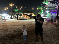 Отель находится с выходом в город и на 1 береговой линии, если выйти из отеля и пойти наверх по левой стороне мимо магазинов на территории отеля, то выйдете в город через шлагбаум, если пойти на право, то попадете через 50 метров в Пальму 4*, а если перейдете дорогу то попадете в Mirette 3 ( там можно покататься на горках, дальше будет длинная набережная. Если перейдете дорогу и пойдете на лево, то через пару минут будет много магазинов, кафе итд, есть магазин алкоголя Drinkins. А если выйти из лобби отеля и пойти сразу на право, то вы попадете в тренажерный зал, весьма хороший с новыми тренажерами, что удивили, если пойдете выше тренажерного и на лево, то выйдете на пляж Пальмы 4* сначала пройдете лежаки у моря, где вход по лесенке, но там красивая вода, выше волейбольная площадка и лагуна Пальмы. Если от тренажерки пойдете сразу на право, то пойдете по длинной дорожке с лежаками и входом в море с лестницы, где тоже красивая вода и не глубоко, справа будет магазинчик и боковой вход в отель, где уже будет наша волейбольная площадка и сцена, если идти прямо до конца, попадете к рыбному ресторану, там еще стоит яхта и снек бару, работает до 17. 00. Сама территория 2х отлей большая, есть где погулять, пофотографироваться, перекусить, все красиво, ухожено. Возле сцены спа и ресторан итальянской кухни мама мия, спа не берите массаж 35 минут стоит 35 долларов, ниже напишу где брали.