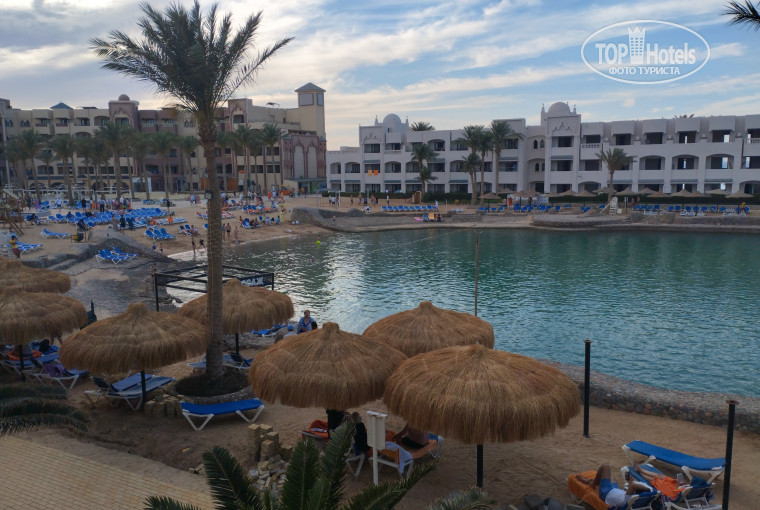 Пляж: В первое же утро, по прилету, обратил внимание, что лежаков свободных просто нет. На 90% лежаков «загорают» пляжные полотенца, резиновые крокодилы, привязанные сумки, ленточки, нижнее белье и т.п. С учетом того, что с 13 по 16 апреля были очень сильные ветра и было холодно, отдыхающих было крайне мало и на пляже, и у бассейна, но зато места все были заняты.