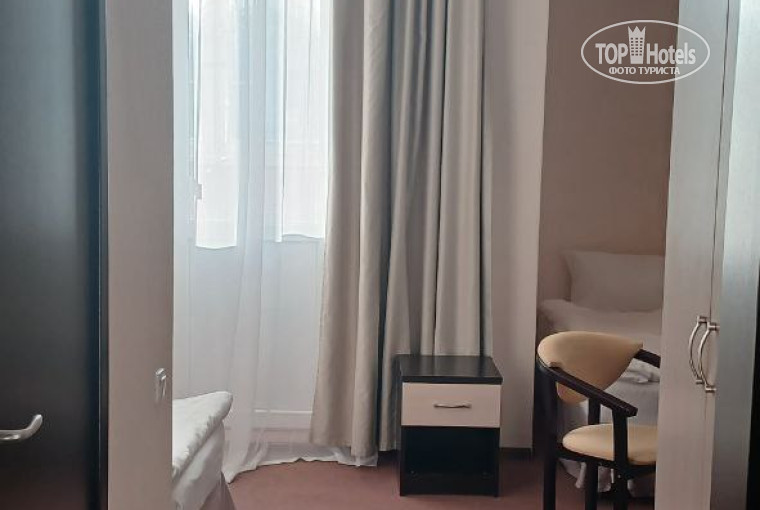 Сам номер небольшой, 2*1,5 спальные кровати, стол, шкаф, телевизор, балкон, маленький холодильник. В ванной было мыло и шампунь и гель для душа. Постельное белье свежее, чистое. Вообще чисто в номере. Единственное, в ванной места мало, некуда поставить свои пузыречки)