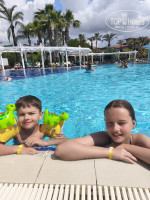 Много расписывать не буду. Дорога из аэропорта - это какая-то каторга. 80 км.мы ехали 3.30 часов. Устали все. Хотя,не сказала бы, что отдыхающих в автобусе было много. Ездили кругами. Заселили без вопросов - быстро. Но номер...😅 Впервые я столкнулась с таким). Окна выходили у нас в лобби отеля, туда, где круглосуточный бар. Никакого балкона. Просто государство в государстве😂 Ни свежего воздуха, ни солнечного света, просто шум 24/7, потому что стеклопакеты в номере нужно менять. До нас, видно, люди уже отмучались, вставляя в окна бумажки ,спасались как могли. В номер 1757 только с бирушами. Кондиционер в номере тоже не работает. Ну и ещё минус. Берите с собой все мыльно-рыльные. Шампунь был только при въезде, потом, (видимо у них нехватка)- пополнялся только лосьон для тела. А так, в принципе - не плохо. По еде всё нормально - разнообразно. Очень вкусные бургеры на пляже. Из фруктов в конце апреля: яблоки, груши, апельсины и грейпфрут. Хотя в других отелях в это время клубника. Анимация и развлечения на уровне. Каждый день развлекательные программы. Территория красивая и большая. Каждый день непроизвольно нахаживали 10000 шагов. Скажу так. Если вы хотите ехать парой - то не в этот отель. Это чисто семейный отдых с детьми. Вернулась бы я сюда во второй раз - ответ нет. Если б не номер, поставила бы 5 с натяжкой. Так - 4.