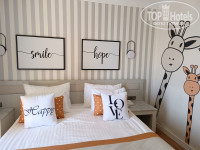 Номер был в главном здании с видом на море. В номере три кровати, стол, зеркало, телевизор. Шкаф у входа большой, но если вы любите складывать вещи на полки, то полок очень мало. Вода горячая была всегда и с хорошим напором. В душе есть шампунь, кондиционер, мыло и даже лосьон для тела. Единственный минус номера - вздувшийся ламинат. Полотенца меняли только по просьбе, зато холодильник пополняли пивом, пепси и водой каждый день. Но все недостатки номера не заметны из-за вида морской бескрайности, открывающейся с балкона. На балконе небольшая сушилка для купальников.