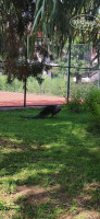 Территория — настоящий ботанический сад с масштабом! Гигантские туи (метров по 10 высотой) создавали потрясающие «живые стены», а банановые деревья и оливковые рощицы заставляли бабушку-дачницу восторженно повторять: «Это же мечта садовода!». Детей заворожили павлины, черепахи и юркие ящерицы — 4-летний племянник даже пытался с ними «дружить», оставляя у кустов ягодки из своего завтрака 😊. Павлины свободно гуляли по территории, и малыши обожали наблюдать за ними.
