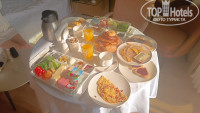 Качественная и разнообразная еда, красная рыба, морепродукты, рыба на гриле и отварная - почти ежедневно, свежевыжатый апельсиновый сок на завтрак. Сладких вин нет, хорошие полусладкие. Отмытые дочиста столовые приборы и тарелки, за неделю отдыха проблем с жкт не было.