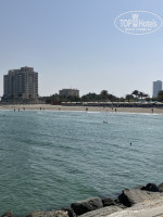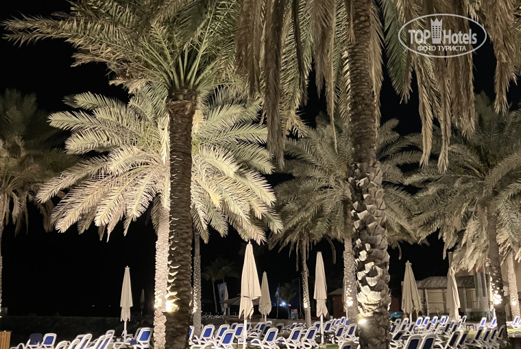 Пошли загорать на пляж . На пляже много лежаков, они расположены на траве - газоне. Это очень удобно, песок не тащится в номер. Лежаки удобные . Но на пляже не хватает тени. Есть пальмы, есть зонтики, но тенистых мест мало, лежаки расположены кучно. В поисках тени люди лежат буквально в 10 сантиметрах. Лежаки в тени надо занимать с самого утра . Иначе вам достанется только солнечное место , что для многих неприемлемо. На пляже видели косяк мелких рыб , прикольно выпрыгивают из воды. Вода была теплая примерно 30-32 градуса, воздух прогревался до +40. Как ни странно , жара хорошо переносилась , видимо из-за сухого воздуха. Дно в море чистое, песчаное, бывают сильные отливы, но это не мешало наслаждаться купанием. Сбоку есть туалет с душевой кабиной , там работает кондиционер- с жары кажется супер холодно в нем. Но это прикольно 🤪