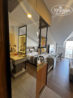 Сам номер нас очень порадовал, выглядит очень стильно и красиво. Много подсветки, зеркала придают комнате больше пространства. Хотя некоторым покажется, что номер не очень большой, но в него поместилось все очень компактно и в тесноте мы себя никогда не чувствовали. Мини бар ежедневно пополняется, он бесплатный. Там есть маленькие соки, Coca-cola, Fanta, Sprite, газ минералка и просто вода. Wifi ловил прям из номера, иногда происходили помехи, поэтому ходил в фойе для качественного соединения.