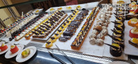 Про еду много написано. Перед входом в ресторан стоят бутылки с водой, что очень приятно. Свежевыжатые соки на завтрак и обед. Кто то писал, что нет зубочисток... Они есть. Стоят на стойке при входе в ресторан, за которой находится менеджер. На завтрак жарят яйца, делают омлет, но у одного повара к открытию плита горячая и очередей нет, а у другой не спешит и ждет, когда плита стает горячей и естественно люди ждут свою очередь ). Салфеток действительно нет, на столе по одной на человека. Так что берите с собой. Посуду убирают очень быстро, официанты отлично работают. Всегда в ресторане присутствует кто то из руководителей. Блюда быстро пополняют. Все работники отеля приветливые, сразу реагируют на просьбы.