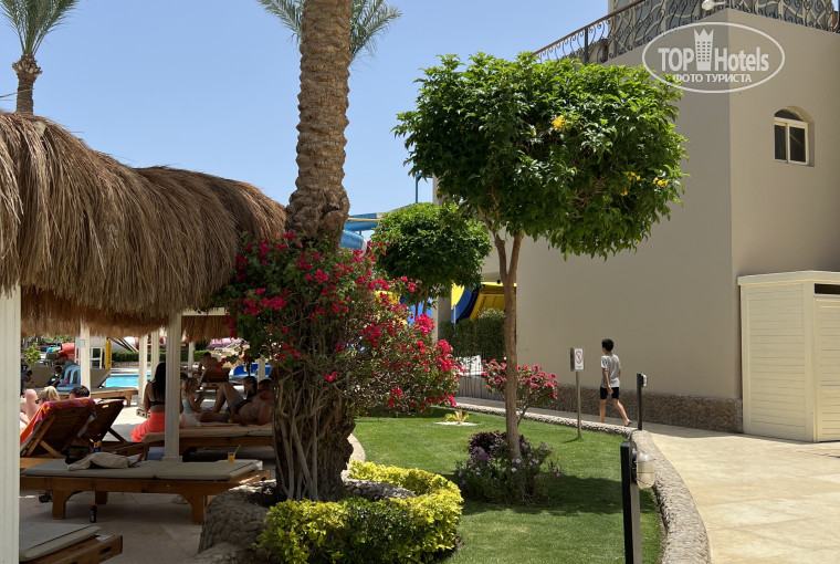 Главное достоинство отеля — его красивая и ухоженная территория. Всё зеленое, чистое, много пальм, цветущих растений и декоративных элементов. Просторно, приятно гулять, даже с коляской — никаких проблем. Для детей масса развлечений: аквапарк, игровые площадки, детская анимация — скучать точно не приходилось.