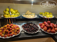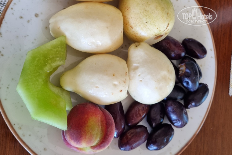 В основном ресторане много готовят разнообразного гриля из мяса: курица, куропатка, говядина, индейка, утка, также всегда были морепродукты: креветки, крабы, кальмары, рыба, пару раз были осьминоги. Если прийти позже начала ужина, то некоторых блюд уже может больше не быть( их не докладывают), могут вынести новые, но не факт, помещение столовой (язык не поворачивается его назвать рестораном) маленькое для такого количества людей, стулья, столы, диваны не первой свежести, все довольно грязное, липкое, по фруктам ожидал большого, хотелось экзотики, были яблоки, груши, сливы, персики, виноград, дыня, иногда гуава, финики, арбузы. На завтраке давали свежевыжатые соки, по факту можно пить только апельсиновый сок, остальные невкусные или пакетированные.