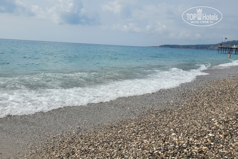 Море. Пляж. Вода в мае ещё не прогрелась, бодрит по началу ,как заходишь, но потом привыкаешь.Перед заходом в море, галька. Без обуви больно, лучше взять с собой.