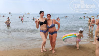 Мест на пляже предостаточно. Много купающихся, хотя по мне вода прохладная в мае.