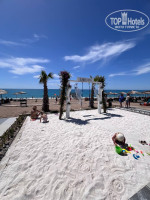 Хорошо оборудованный пляж, достаточное кол-во лежаков и зонтов. Пляж