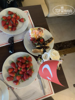 Еда: утром яичница, омлет с разными добавками, вкусная выпечка, сыры, невкусная колбаса, вкусная халва (только на завтрак) и ещё много всего. Обедать можно на пляже. Усеченный вариант, но вполне полноценный и с небольшим , но выбором. Многие оставались. Мы ходили обедать в отель. Суп-пюре одного вида (почти всегда вкусно). Мясо, рыба, соленья, оливки, сладости. Все в наличии. Но не очень много, так как реально много людей оставались на пляже. Ужин: вполне разнообразный. Несколько раз была форель, один раз тунец, простенькая рыбка была каждый день. Мясо в разных вариантах присутствовало в изобилии. Из фруктов апельсины, грейпфрут, яблоки, мандарины, вкусные груши. Один раз была клубника в понедельник в турецкую ночь. Многие хватали руками, как в первый раз увидели. Один раз был арбуз, порезанный в мелкую крошку. Такую подачу видела в первый раз. Наверно, чтобы меньше съели. Вообще с едой всё в полном порядке. На пляже с 11 бургеры, картошка фри. С 11:30 пекли лепешки. С 12 уже обед. В 15:30 мороженое.