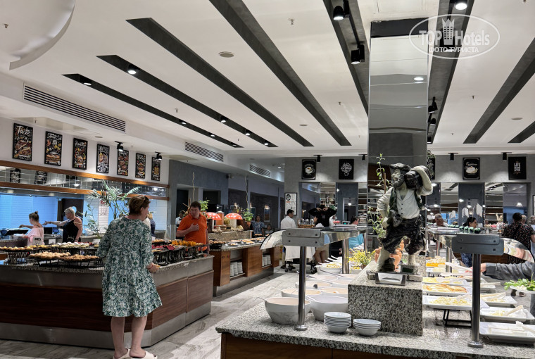 В этот отель мы попали совершенно случайно. Нам перенесли рейс на 2 дня и авиакомпания S7 поселила нас в данный отель совершенно бесплатно. От аэропорта до отеля путь составляет 30 минут. Номер нам достался на 9 этаже в корпусе C, с видом на бассейн и на пустырь. В номере были 2 небольшие комнаты. В одной комнате две раздельные кровати, а в другой одна двухспальная большая кровать. Номер конечно подушатанный. Кровати очень удобные. В холодильнике были бесплатные напитки. Шампуней и кондиционеров в отдельны тюбиках не было. Халатов тоже не обнаружили. Зато были тапочки. Еда в отеле очень достойная. Много разных вкусных десертов. Бассейн просторный. Лежаков всем хватало. У бассейна имеется бар. На море можно было добраться либо пешком, либо на электромобиле. Пляж просторный. Много лежаков. Также имеется бар, где можно взять напитки и перекус. Заход в море не совсем удобный. Сразу практически глубина. Море чистое. Дно из мелкой гальки. Рядом с отелем имеется много разных магазинчиком. Цены везде одинаковые. Вечером в отеле вечерняя программа. Примерно в 23ч музыку выключают и становится тихо в номере. В целом мы были рады побывать в данном отеле. Отель соответствует твердой четверке,.