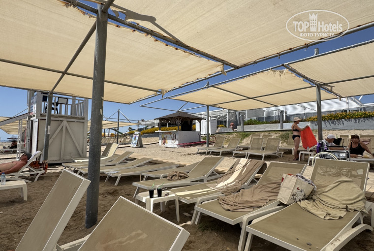 На пляже есть бар , можно пообедать.