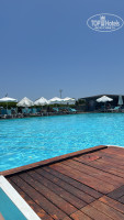 Пляж через дорогу. На пляже народу мало , обустроен не очень хорошо . Лежаки очень далеко. Пляж крупная Галька. В море заход не очень хороший. Море чистое прозрачное . Есть пирс . До Сиде 30 минут на машине . Либо можно добраться на двух автобусах или такси 35 евро или долларов.
