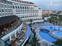 Всем добрый день. Сейчас находимся в отеле. По качеству еды и обслуживания и номеров до 5 звезд , отель не дотягивает. Вот расположение отеля удачное, а ремонта номеров и в отеле, походу нет давно. Номера уставшие, ламинат на полу проваливается, двери такое ощущение, что их грызли собаки. Лифты в отеле постоянно не работают. Приходится ходить пешком по черной лестнице. Кто то писал про кран над бассейном, честно говоря не видели чтобы он работал. Рядом есть стройка но она не мешает. Отдельно хотел бы рассказать про сервис обмена полотенец- это просто трындец, каждый раз мадам, которая там работает, устраивает истерики и придумывает новые правила обмена…. Постоянно вечно не довольна, такое ощущение что все ей должны. Отдыхали в этом отеле еще в 23 году и не только у нас тогда с ней были проблемы. Народ обещал ее уволить…., но видно желание отдыхающих не сходится с хозяевами отеля. Если вы не пользуетесь доп.услугами хаммама, начинается представление с истерикой при обмене пляжных полотенец. На пляже отеля постоянно не хватает лежаков, которые предприимчивые отдыхающие занимают утром, а потом они пустуют вместе с их полотенцами. Если закрывать глаза на не которые проблемы, то в целом можно отдыхать. Но честно говоря в отеле 5 звезд не должно быть проблем с обменом пляжных полотенец и ремонтов лифтов, которые постоянно не работают…. Думали за два года в отеле будут улучшения, но видно это здесь никому это не нужно- и так сойдет….