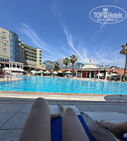 Очень хороший отель, парк с качелями и гамаками. Кормят везде и всюду) Безумно большая, красивая, и зеленая территория, очень чисто, прекрасное местоположение, три бассейна и хорошие горки.