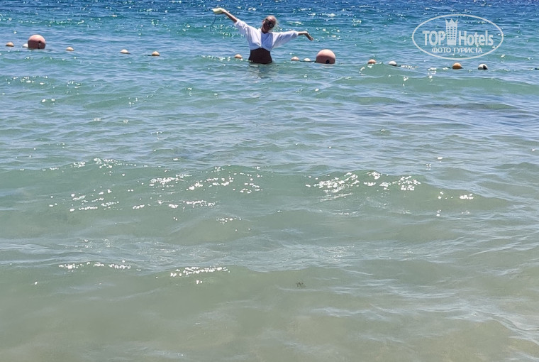 На пляже заменили лежаки. Их много, хватает всем, учитывая что пляж на два отеля. Установили раздевалку. Есть претензия к участку моря относящегося к отелю. При отливе у буйков, хоть при установке новых их и перенесли см на 30 дальше, реально по пояс и это при моём росте 160 см (на фото видно). Хотелось бы чтоб буйки перенесли хотя бы метров на 5 подальше. Приходилось ходить в море немного левее, там как раз буйки подальше и можно спокойно поплавать. По утрам привозят топливо для заправки лодок, катающих на бананах и таблетках, запах стоит ужасный и пленка от него плавает на поверхности воды. Это огромный минус.