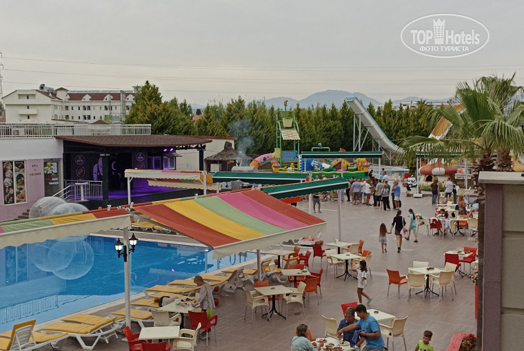 Анимация вроде и есть, но такое. Утром гимнастику проводят на ковриках (на водную желающих не было), дартс видела. Днëм мы у моря были. Вечернее шоу - детям весело, взрослым скучно, подобие дискотеки меньше часа, музыка ерундовая, да и желающих особо нет. С 23.00 время ночного супа и музыку уже вырубают. Супы норм, мы ели. Вечерами ездили гулять в античный Сиде. Удобно остановка маршруток по пути к морю и от конечной до конечной, ездили на номер 3