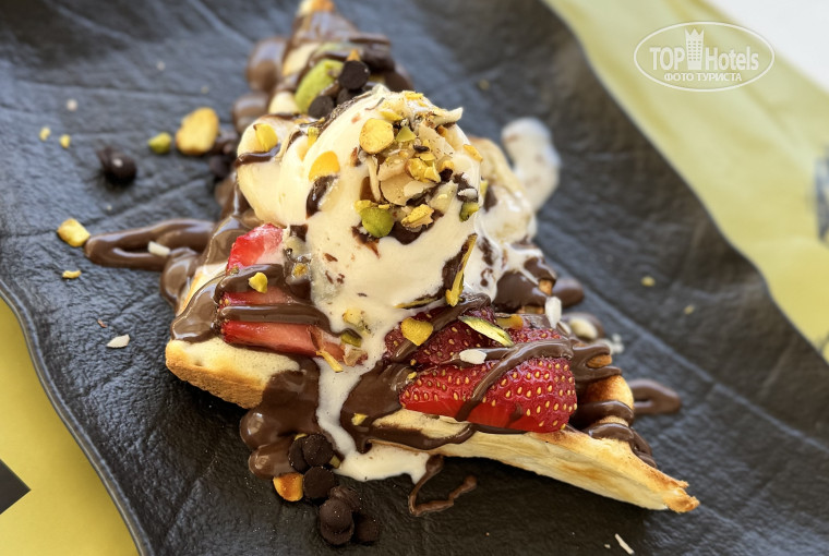 Еда вкусная. Честно не хватило тушенного мяса. Много курицы, индейки, рыбы (дорадо, семга, сибас). Холодные закуски из морепродуктов: креветки, осьминоги, кальмары, мидии и красная слабо-соленая рыба). По фруктам в мае : клубника, яблоки, груши, бананы, абрикосы(никакие), арбузы. К клубнике сливки всегда подавали, ммммм. Шоколадный фондан один раз делали.