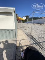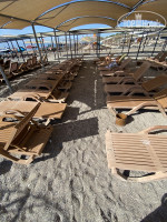 Пляж галька с окурками, мусором. Впечатление оставляет желать лучшего. Рядом заброшенный кусок пляжа где нет тентов, но есть каркас от них. Удручающе. Настила деревянного чтоб пройти к лежакам нету.