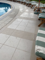 Спустя несколько дней заметили что плитку у бассейна как-то не особо то и моют. Так сметают крупную листву. Под лежаками вообще грязно.