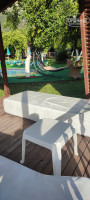 Зона отдыха в мандариновом саду с бассейном - отлично для спокойного отдыха после обеда, много мест, где можно расположиться: кресла, диваны, качалки, лежаки, матрасы под крышей.