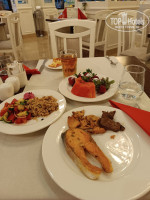 Питание: ну тут очень много всего, все вкусно. Дорада и сибас в основном из рыбы, один раз в пляжном ресторане давали семгу. Ну в остальном клубники навалом три раза в день, рыба форель копченая три раза в день, креветки и мидии под соусом, просто нет креветок, сладостей много вкусных, мороженое какое хочешь, гезлеме.