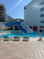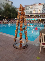 Людей в отеле отдыхало много. Ресторан работал в режиме" через прилавок", то есть еду давали сами повара, но количество не ограничивалось. Много фруктов было...груши шикарные, арбуз сладчайший, виноград крупнющий.