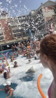 Проводили пенную вечеринку с разноцветными воздушными шарами и танцами в бассейне под пенным потоком и около него (даже главный менеджер отеля был),