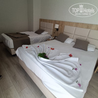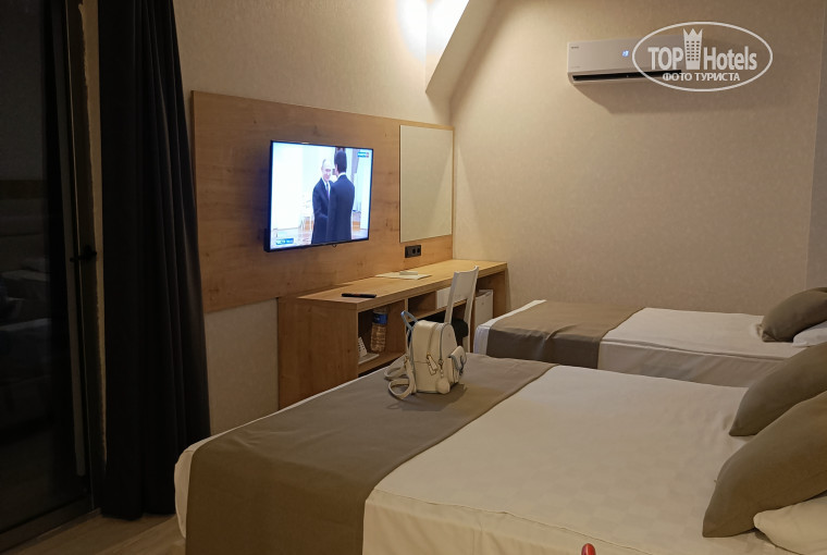 Отдыхали с сыном 8 лет с 28 мая, прилетали на неделю. Прилетели поздно вечером, в отеле были в 20.15, нас сразу отправили в ресторан на ужин (ужин в отеле до 20.30), еды было достаточно, никто подносы из-под носа не забирал. Затем вернулись на ресепшен, где 2 молодых человека оформили наши документы и сразу же выдали карту от номера. Нас проводил до номера Мустафа, он же донёс чемоданы. Я восхищена его знанием русского языка, впервые встречала, что на ресепшен говорят так чисто и грамотно по-русски, без акцента (такое не часто в России встретишь). Нам достался номер 1012, на -1 этаже, номер большой, с одной 2х спальной кроватью и 1 односпальной, вид из номера на релакс-бассейн. Мустафа показал как найти русские каналы на телевизоре, который, к слову, за ненадобностью мы больше не включали, и включил кондиционер.