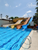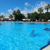 Территория отеля компактная, но за счёт правильной организации на ней расположено 3 бассейна: основной, релакс и с горками, поле для игры в мяч (волейбол, футбол) и несколько баров.
