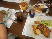 Питание. Как-то слышала, что оно однообразно. Не соглашусь. Всегда есть большой выбор еды: супы-пюре, гарниры, мясо - курица, говядина, субпродукты, много рыбы, салаты, зелень, овощи, фрукты, ну и, конечно, очень вкусные десерты. Арбузы, яблоки, груши, мандарины, апельсины и пр. были на завтрак, обед и ужин. Всегда в свободном доступе чай, кофе (кофемашины + фильтрованный на завтрак), вода, соки. На баре газированные напитки (кола, спрайт, фанта) и алкоголь. Из алкоголя пила только Мохито 1 раз и Пина Колада, когда было холодно (с погодой нам не повезло, 2 дня выпало дождливых). Мохито мне показался недостаточно сладким, а вот Пина Колада, наоборот - очень даже, не такая приторная, как её делают у нас. Перекусить можно было с утра и до вечера у бассейна и на пляже (гамбургеры, картошка фри, салаты, зелень, овощи, мясо на гриле, десерты, фрукты). И главное, что всё приготовлено очень вкусно, есть с чем сравнить (не пережареное, разваренное и пр.). В пятницу - рыбный день: были креветки, мидии, роллы (мы не любители, не пробовали), в пн - Турецкая ночь, много интересных блюд, в т.ч местных.