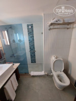 Прилетели мы утром, в отель приехали быстро, заселили нас тоже относительно быстро. Номер был близко к главному ресторану, но далеко от пляжа. В номере все работало исправно. Мебель не новая, сантехника тоже. Но состояние рабочее. Территория отеля небольшая, корпуса расположены один за одним по пути к морю. На пляж приходилось топать минут 7-10 по дороге с немаленьким уклоном. Вниз идти еще ничего, а вот подниматься пешком наверх то еще удовольствие))) иногда мы пользовались трансфером и ездили на пляж и обратно на маленькой газельке, вызвать ее можно было по телефону у пляжа.