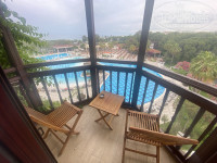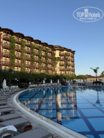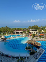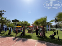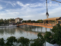 Территория — это просто сказка! Она большая, но не огромная. Складывается впечатление, что ты приехал в гости к природе и ее обитателям. Фигурки животных, живые ежики и белки, ухоженный ручей, который чистят ежедневно. Множество локальных небольших детских площадок, идеально подстриженный газон... а какой запах цветов! Все это сопровождается тихой спокойной музыкой, которая сопровождает тебя на пути через оборудованный арочный переход от ресепшена к бассейнам и главному зданию. Прекрасно продумано и реализовано! Также на территории, по пути на море, вы встретите речку. По ней периодически плавают лодки различных размеров. С них можно половить рыбу и крабов, которых вам потом приготовят на обед. Путь на море пролегает через деревянный разводной мост, который иногда разводят, чтобы пропустить большие лодки. Также на территории за аквапарком и футбольным полем находятся вольеры с животными. К ним раз в неделю водят детей из детского клуба, но и самостоятельно можно иногда сходить, посмотреть и угостить салатиком из столовой. На территории также имеются столы для пинг-понга, большое футбольное поле и несколько теннисных кортов. Ракетки и мячики берутся под роспись в будке у бассейна. Отдельно отмечу стабильный и быстрый Wi-Fi. Он работает даже на самом дальнем лежаке на море! Такого быстрого и качественного интернета в отелях я никогда не видел. Бывали временные сбои из-за увеличенной нагрузки на сеть, но за 10 минут все восстанавливалось и было такое раза 3 за весь отдых!
