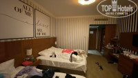 Жили мы в номере 1518, на пятом этаже главного здания. Хорошие, чистые, отремонтированные комнаты. Мебель в хорошем состоянии, балконы небольшие, но комфортные. По бокам балкона вьются прекрасно пахнущие цветы, что придает уюта, аромата и отделяет от соседей. В номере телевизор, сейф, мини-бар с газировками, минералкой и пивом. Тут все стандартно. Бар пополняется ежедневно. В ванной комнате есть все, что требуется туристу и даже больше: мочалка, шампунь, бальзам для волос, гель для душа, молочко для тела, жидкое мыло — все это в больших диспенсерах на стене (см. фото). Помимо этого имеются и ватные диски, и палочки для ушей, и пена для бритья с бритвой Gillet. По факту можно вообще ничего не брать с собой, все и так есть. Халаты предполагаются всем гостям, но их нужно запросить дополнительно. Тапочки уже ждут вас в номере (детские с прикольным песиком запрашиваются отдельно). В душе также имеется фен для волос. По кроватям есть только один минус: «двуспальная» кровать по факту является полуторкой. Белье хорошее, незатертое, без дыр. Матрасы нормальные: жена была довольна, а я предпочитаю помягче, но в целом по ним ок. Под конец отдыха, в последний день, перестал охлаждать кондиционер. Мы не стали просить чинить, так как был последний день (на ночь всегда гоняли на единичке, чтобы было чем дышать). Окно на ночь, как альтернативу кондиционеру, открыть мы не могли по причинам, которые я опишу ниже. Убирались в номере вполне сносно. Мы всегда оставляли чаевые, и один раз, видимо, уборщица не была уверена, что это ей, и решила не брать (встретили в коридоре и поблагодарили лично). Честный приветливый персонал.