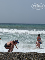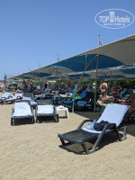 Пляж очень большой, лежаков всегда всем хватало.Вход в море галька, берите с собой коралки ( аквашузы ).При выходе с пляжа есть душ и раздевалка, а напротив-пляжный бар.Здесь пиво, кола, спрайт, вино белое и красное, а с 15 до 16 мороженое, типа эскимо, в упаковке, 3-х видов.Рядом с пляжем с 11 до 16 женщина печёт лепёшки гезлеме с сыром и зеленью.