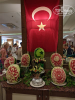 Пляжные полотенца в хамаме, без залога. Обмен там же. Бесплатный wi-fi только на ресепшен, платный стоит 2$ и ловит везде на территории. Территория отеля не очень большая, но очень зелёная. Один большой бассейн для взрослых, второй маленький с горками.Есть теннисный корт и волейбольная площадка.Очень классная анимация, ребята устраивают всякие игры, проводят гимнастику, в общем, скучно не будет.