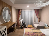Номер сначала показался довольно старомодным, но потом поняла, что это неважно. Он был очень чистым, уборщица с огромным энтузиазмом застилала кровати каждый день и тщательно убирала. Ни в одном турецком отеле я не встречала такой хорошей уборки. Мини-бар безоговорочно пополнялся каждый день, там и напитки, и снеки. Новые полотенца каждый день, даже если не бросил их на пол.